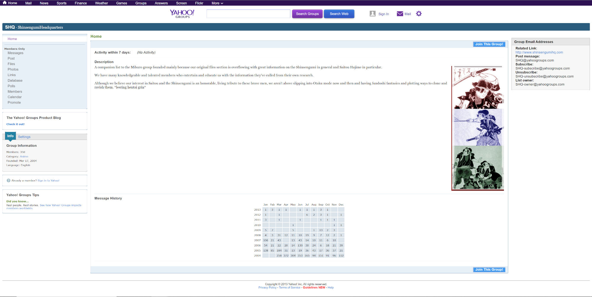 A companion list to the Miburo group founded mainly because our original files section is overflowing with great information on the Shinsengumi in general and Saitou Hajime in particular.